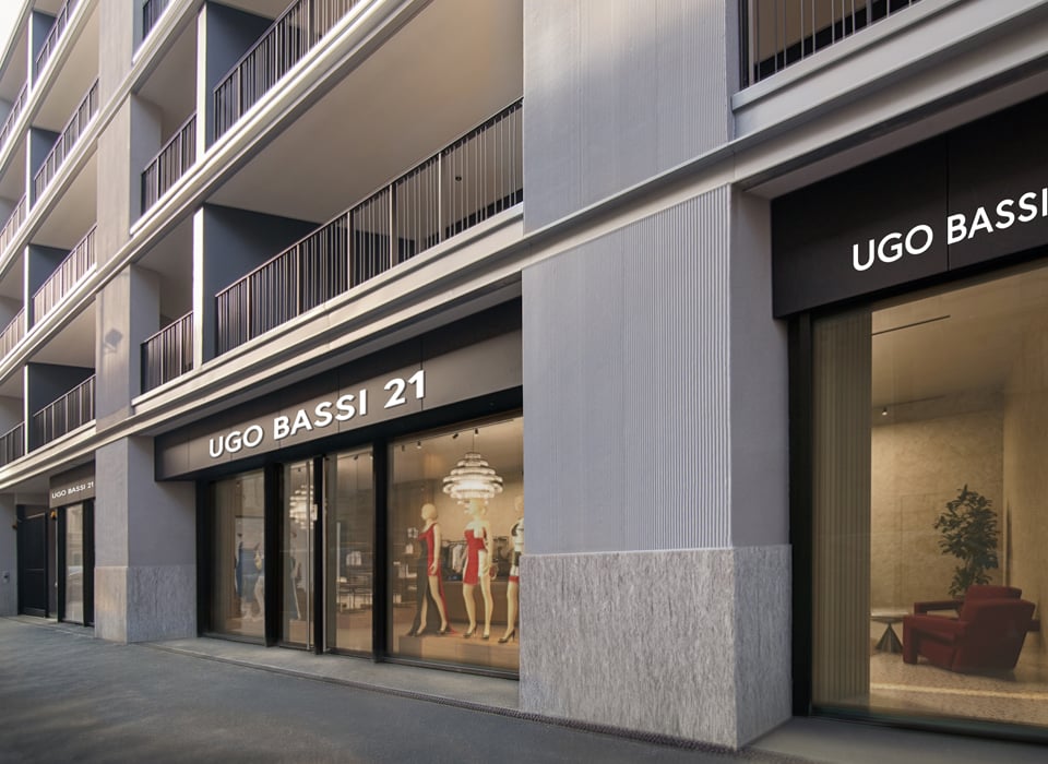 Il locale commerciale in affitto si trova al piano terra di “Oasi Isola”, un moderno sviluppo residenziale di nuova costruzione in via Ugo Bassi 21.