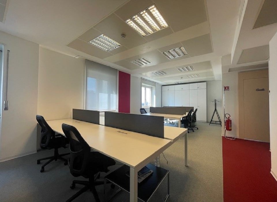 Gli spazi ufficio in affitto si trovano al decimo piano, e sono stati completamente ristrutturati, con pianta di piano regolare e flessibile, pavimenti sopraelevati, controsoffitti, nuovi locali bagno e pianta tecnica.
