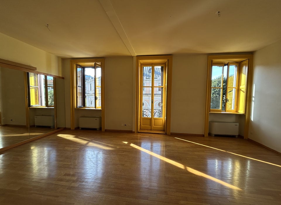 Lo spazio disponibile per la locazione si trova al terzo piano e presenta una pianta molto efficiente con numerose finestre che garantiscono luminosità a tutti gli ambienti. Il salone principale è dotato di tre ampie finestre a tutt'altezza con affaccio sul Teatro dal Verme.